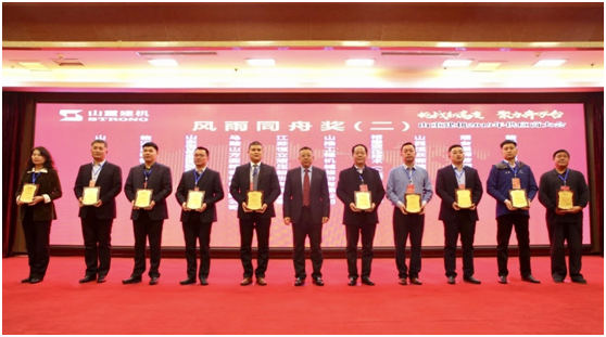 山重建机与公司合作已有25年之久, 25年底蕴注定铸就辉煌;25年风雨注定绽放彩虹。会上,公司被山重建机授予“2019年度风雨同舟奖”、“2019年度质量优胜奖”两项荣誉!